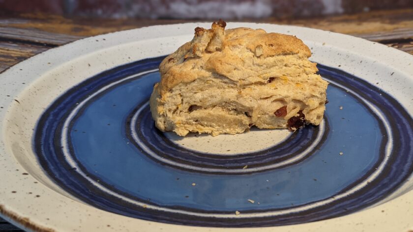 - Form scones: Form the dough into a flat circle on top of the silicon mat. Slice into 8 pieces using a bench scraper or butter knife.
